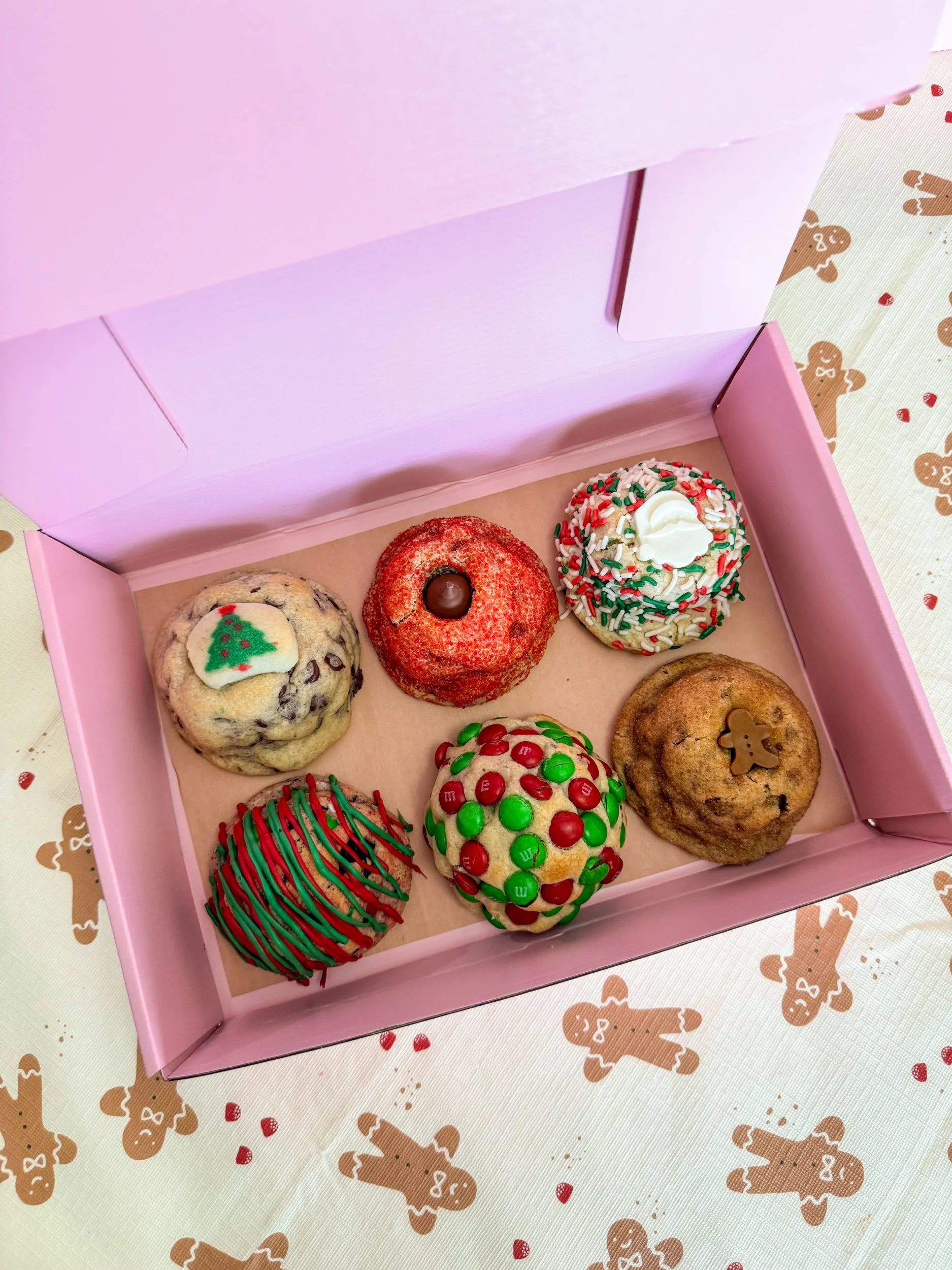 Jingle Jangle- Vanilla dough mixed with Christmas Oreos, M&Ms, and sprinkles